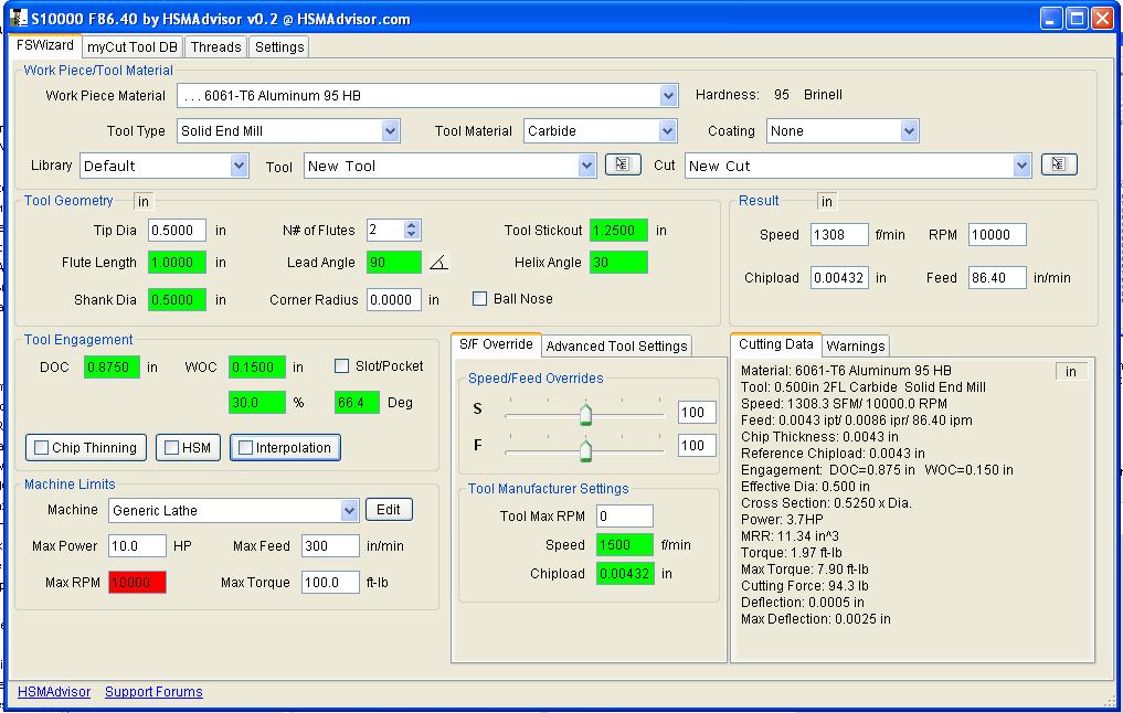 HSM allows to increase cutting speed when chip thinning occurs. - Manufacturer's Speed and Chipload input