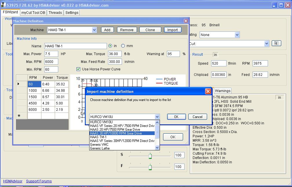 - Minimum RPM entered in Machine Definitions dialog now actually forces FSWizard to not go below that value and generate a warning.