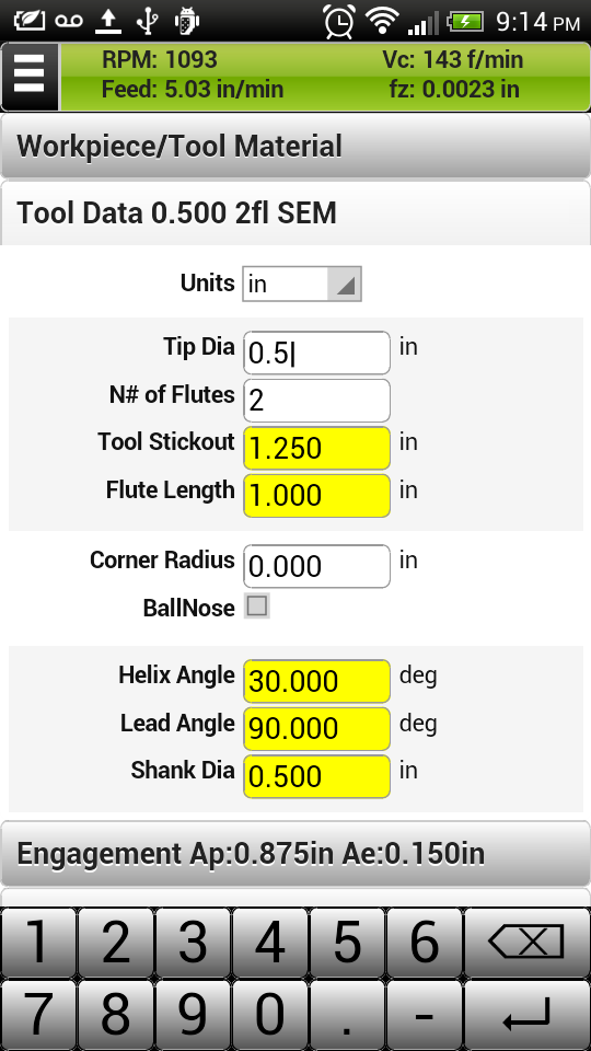 It even knows flute length, cutting depth, width, ramp angle... pretty much everything.