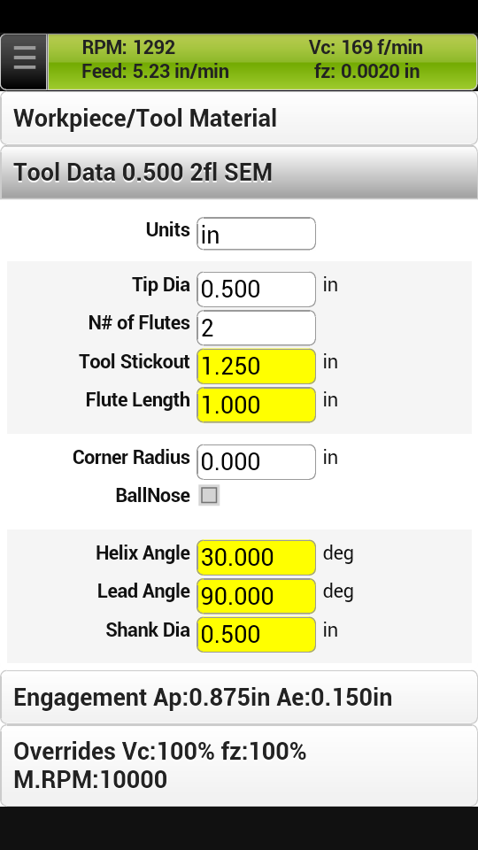 It even knows flute length, cutting depth, width, ramp angle... pretty much everything.