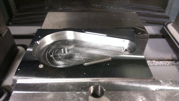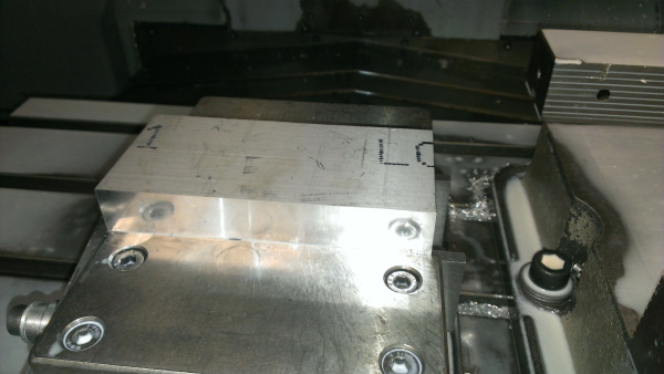 Thus I decided to not use the soft jaws approach and machine it in a fixture. Soft jaws are generally OK for tolerances down to +/-0.001" but because of the draft angle the part would always want to pop out of the jaws.
