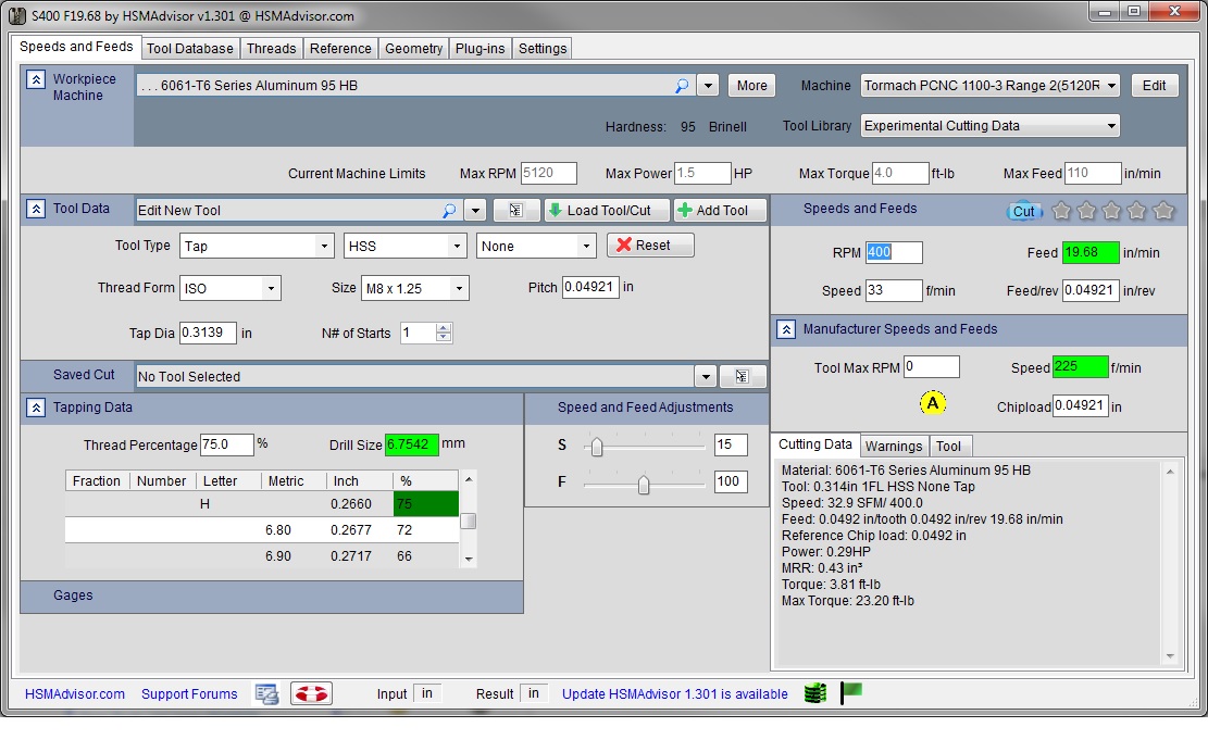 Where'd the torque go? You can see by the machine selected that this tool combo exceeds the torque curve, but no warning has shown up. Where's this at for the tap? "New combined Tool Torque and Deflection Limit controls" Also it's telling me there's an update to the same version that's running. :blink: Running Win7 64 Ultimate.