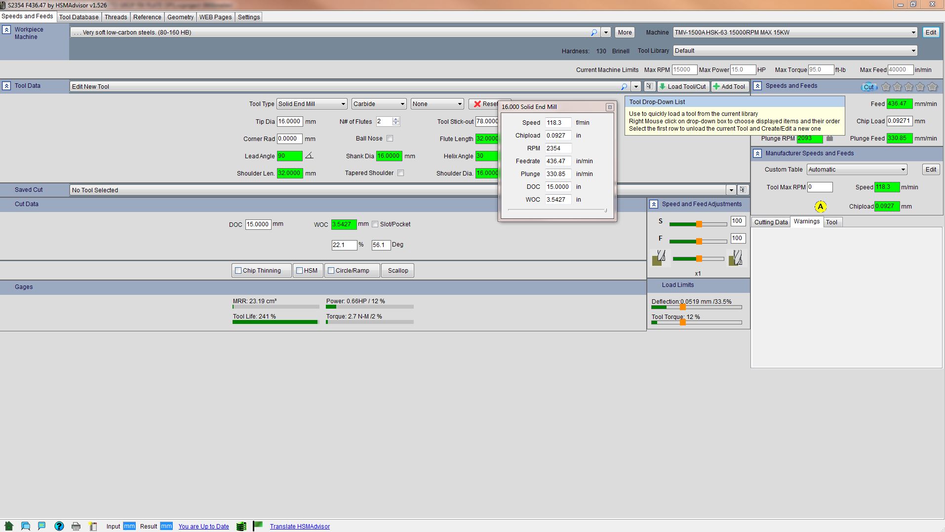 Hi I'm using the android version 1.516 and when set to mm the display only shows imperial for feed, Vc and fz. Am I missing a setting. Thanks, Steve