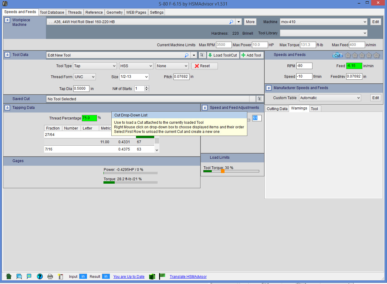 maybe add a warming message when any user input values are changed due be the system to some other limiting factor so the use knows what maybe added to change. like for this feed. "Warning max flute length exceed, review tool flute length"