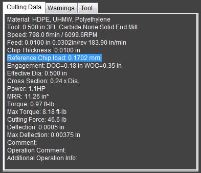 Hello, I am running V1.536 and when I look at Reference Chip Load the dimension is in mm while the rest of the parameters are in inches. I tried clicking on the units for change, but that only works for other parameters. Having the Ref Chip Load in inches here would be a help. Is there a setup that I am missing to get this to report in inches? Best regards, Bruce