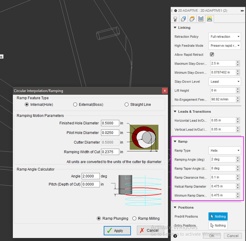 HSM Advisor Circle/Ramp & Fusion 360 Helix