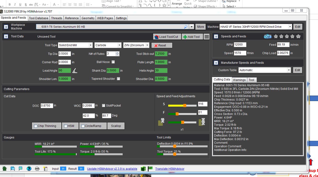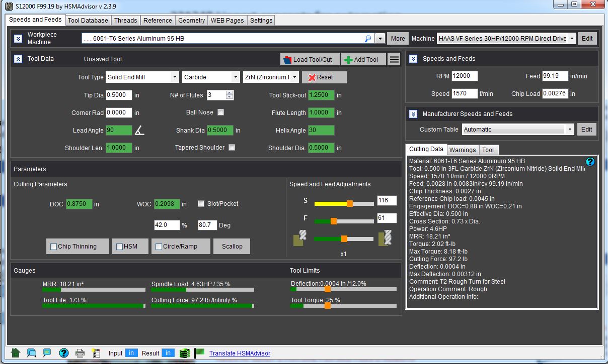 I am curious as to the output of the cutting force guage, is this based on the radius of the tool being used? I.E. if i have a 0.500" endmill and the cut outputs 45.9 lb in the cutting force gauge can i assume this to equate to 45.9\48 = 0.956 ftlbs of torque?