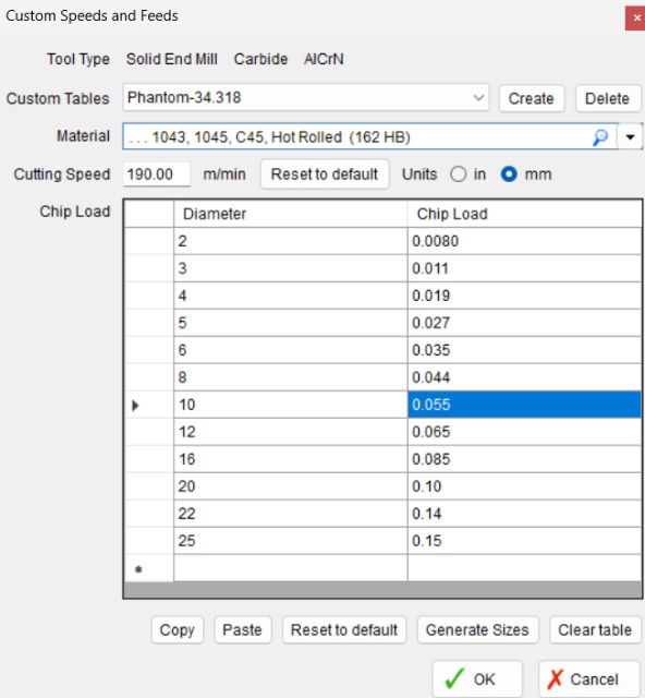 When selecting a tool, the proposed chip load is twice the amount defined in the 'Custom Speeds and Feeds' for the tool, unless I lower the 'Feed Adjustment' to 50%. Why is that?