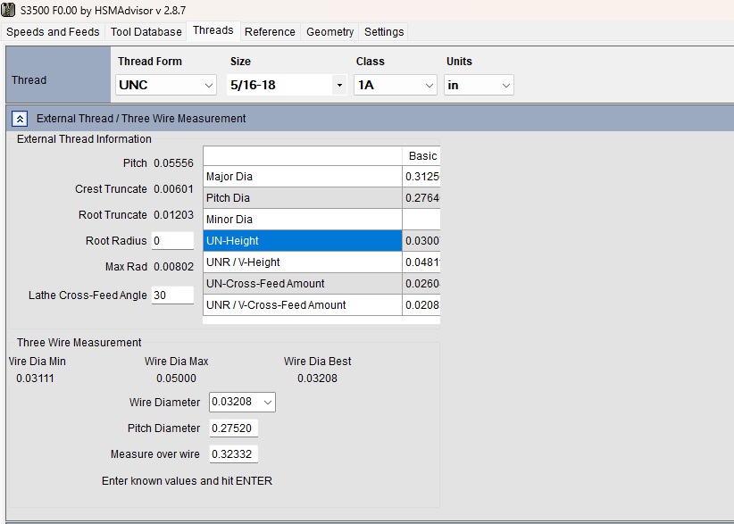 External Thread/Three Wire Measurement