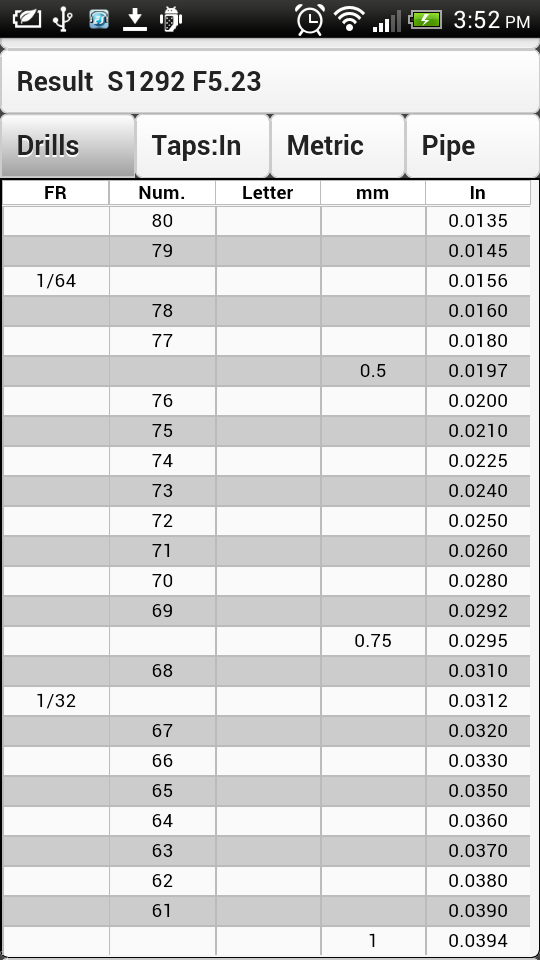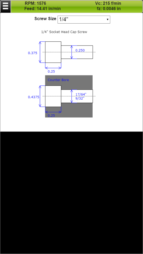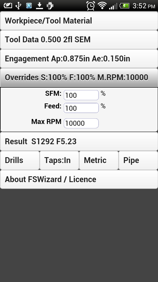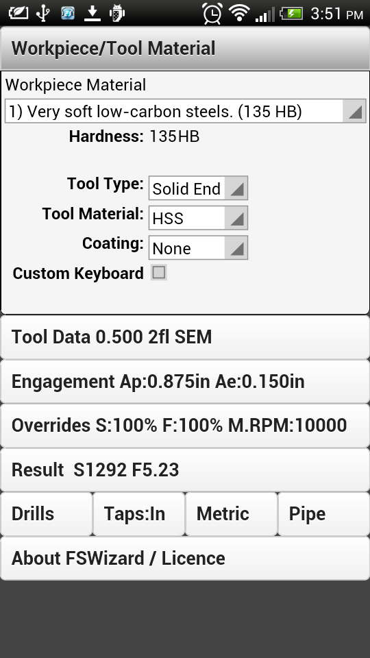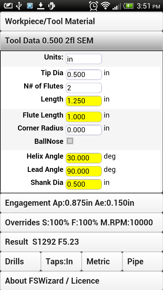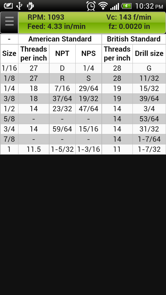 * Built in tap drill calculator to calculate not only cutting speed and feed , but also drill dia in accordance with desired thread engagement.